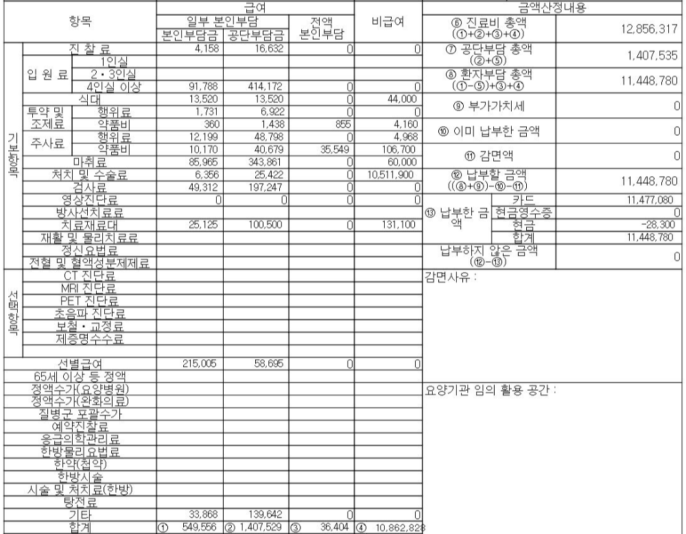 | 총 진료비 | 12,856,317원 | 전체 비용 |